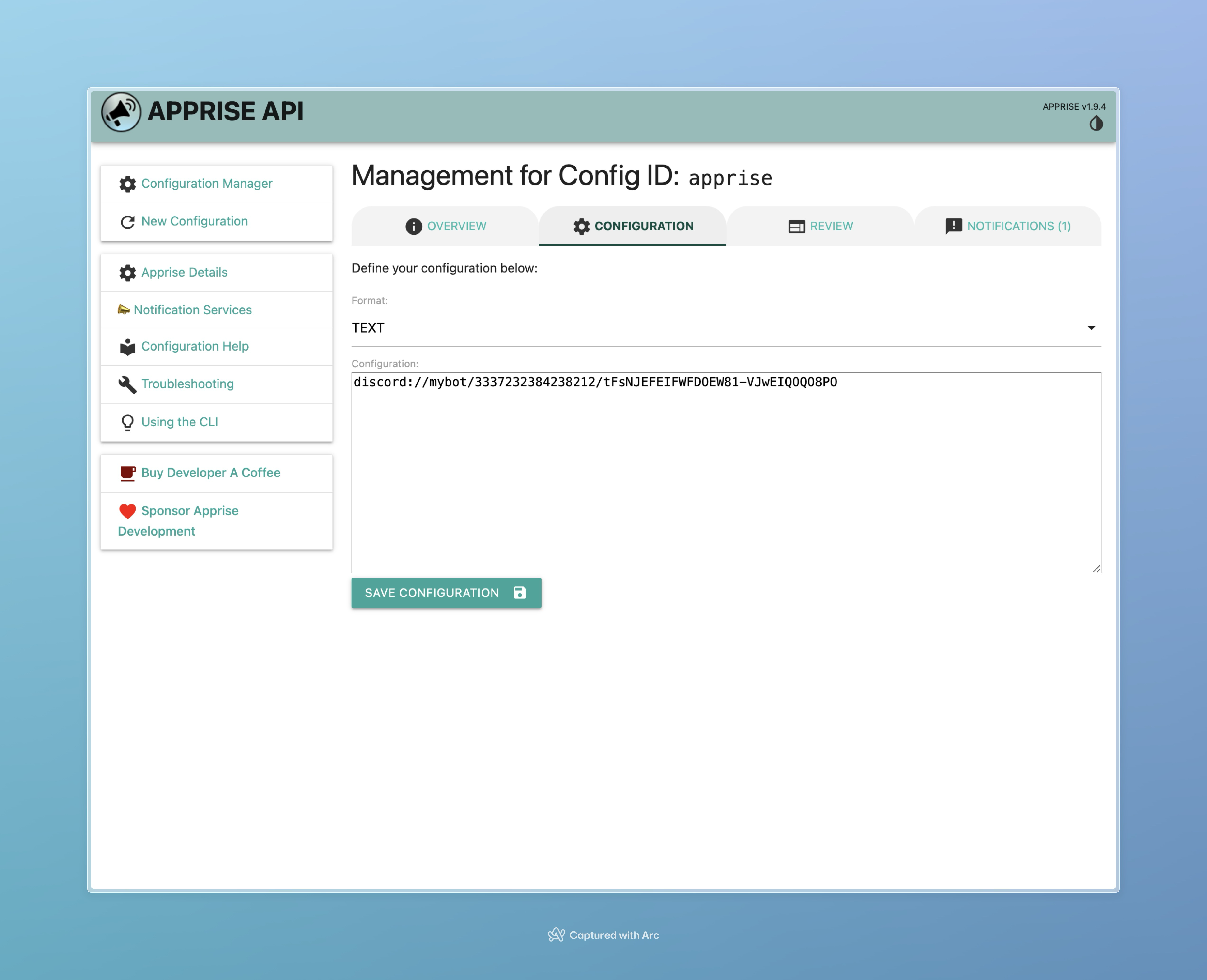 Apprise 支援 YAML 跟 Text 兩種設定格式,這邊我們以 Text 為例。